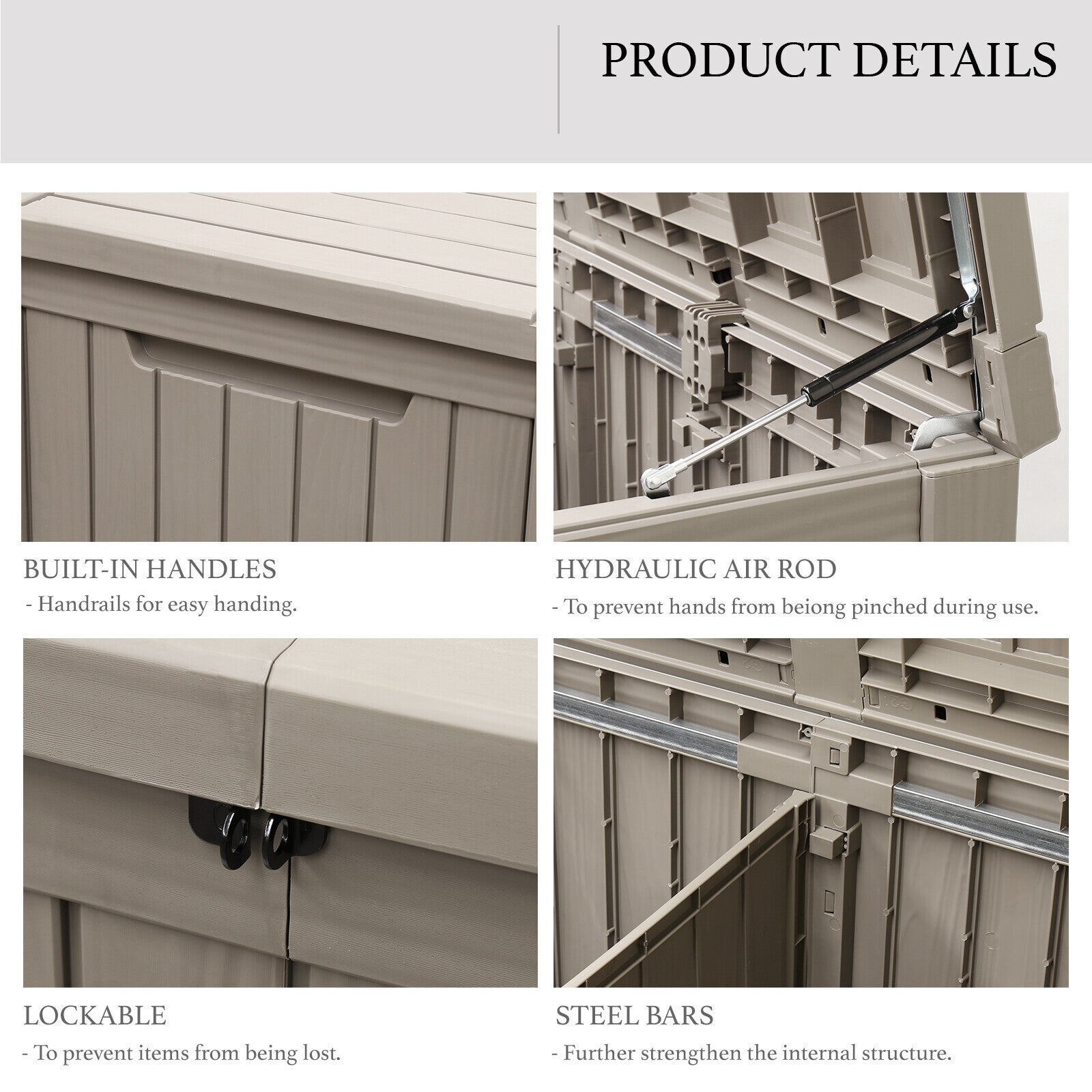 This stylish and robust deck box is your solution to a clutter-free patio or backyard. With its ample interior space and robust construction, it serves as the perfect tool for maintaining an organized and clutter-free outdoor area.