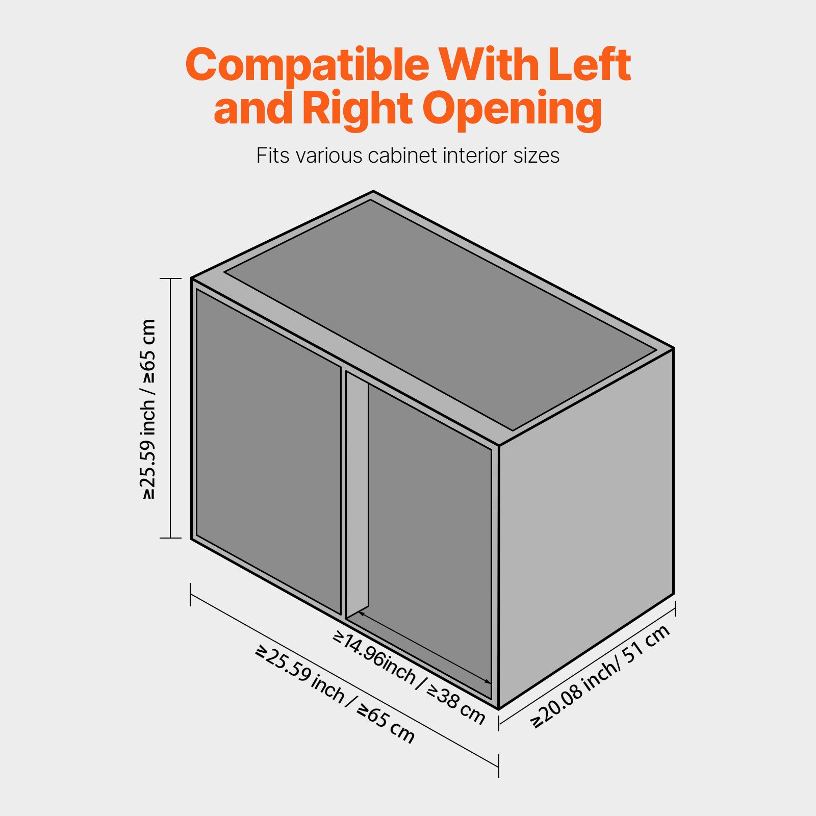 ≥25.59 x ≥20.08 x ≥25.59 inch
