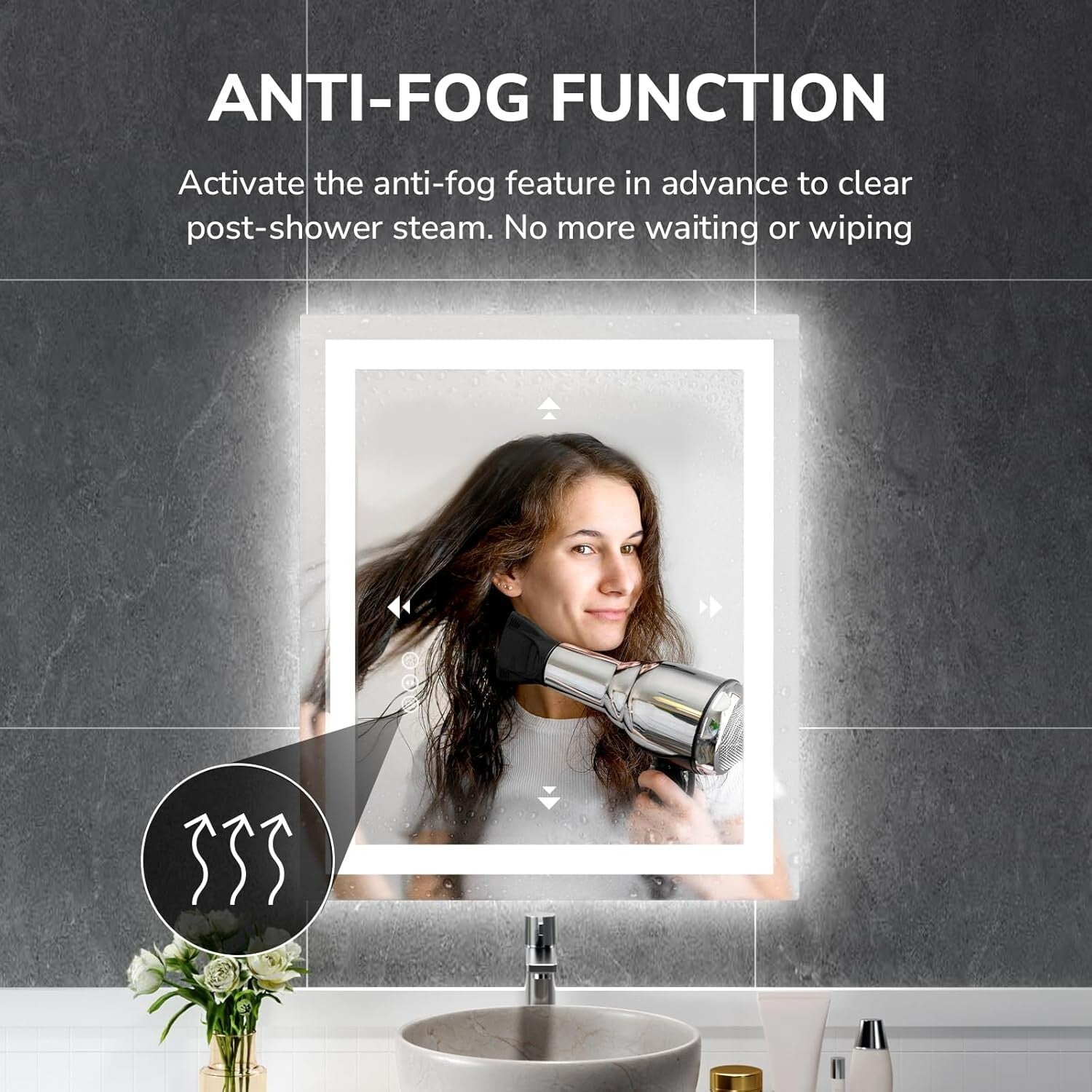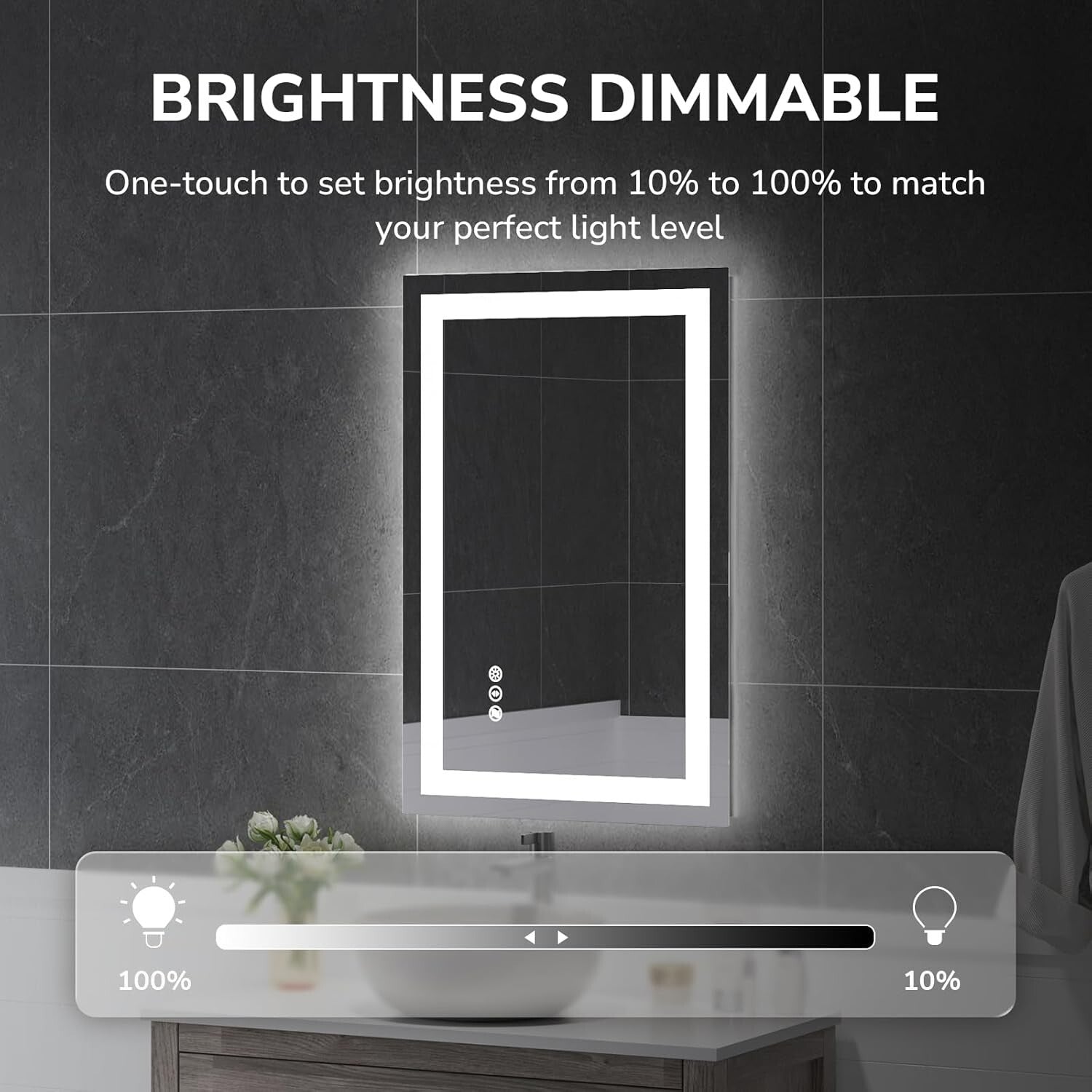 24x36in LED Bathroom Mirror Wall Vanity Mirror Dimmable Anti-fog Tempered Glass