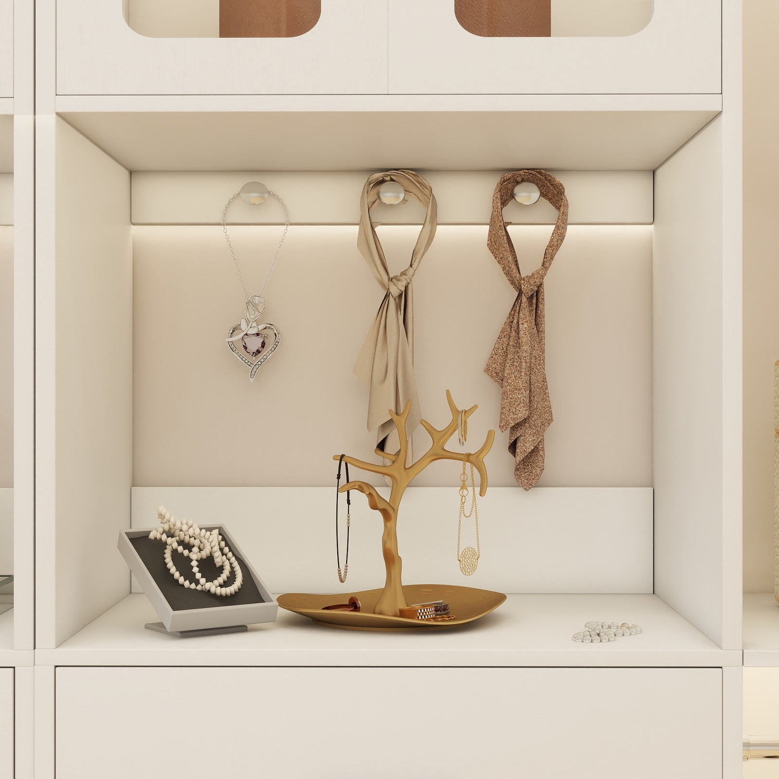 - Ample Storage Space:Â The closet organizer features multiple storage compartments, a cabinet with transparent acrylic doors on the top, and easy-glide sliding drawers. Ideal for organizing everything from clothing to accessories, and keeping your closet neat and orderly. There is a hanging rod on the side to hang dresses, suits, or casual wear.