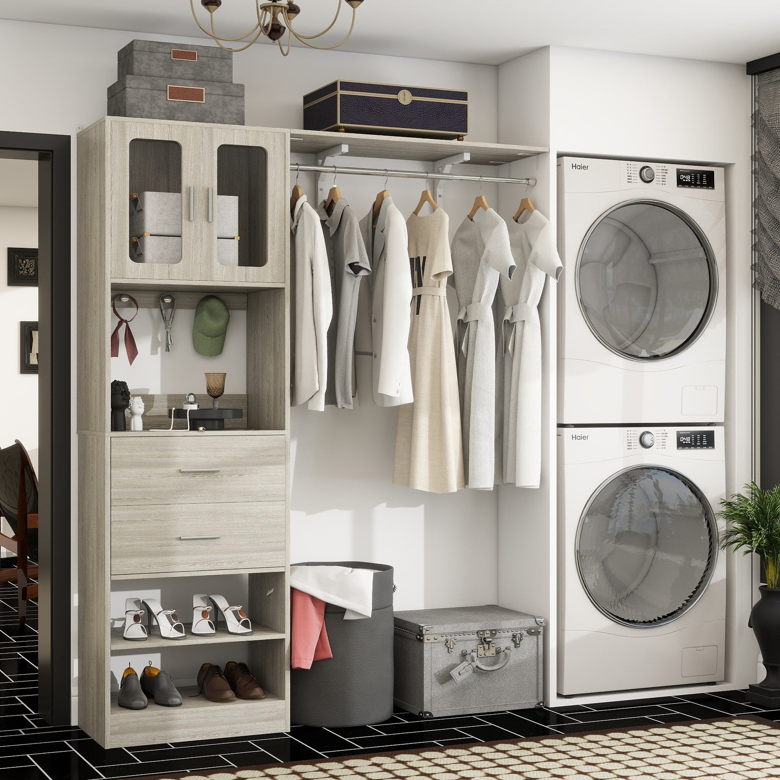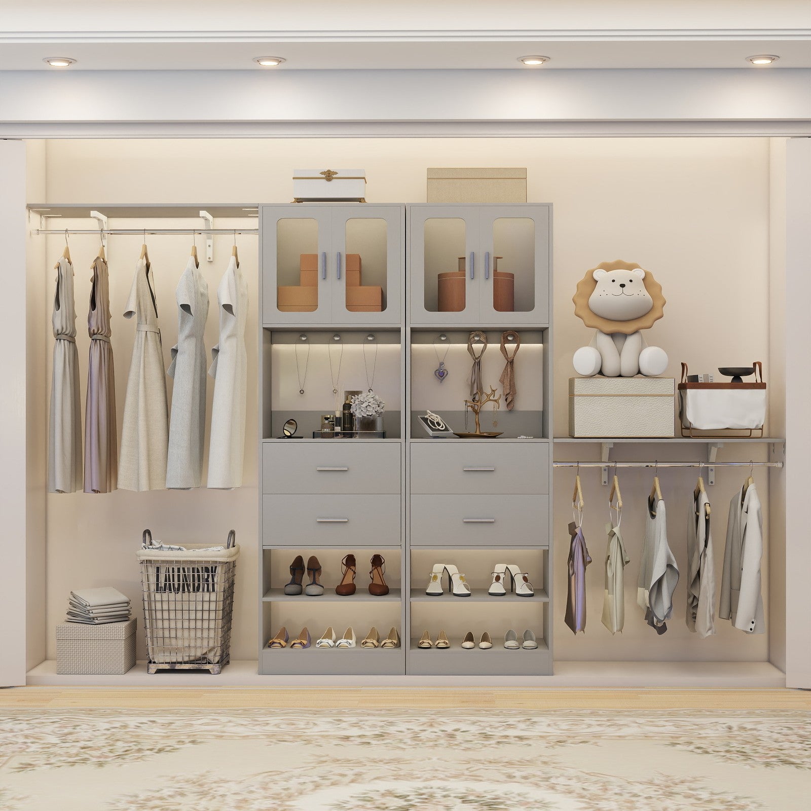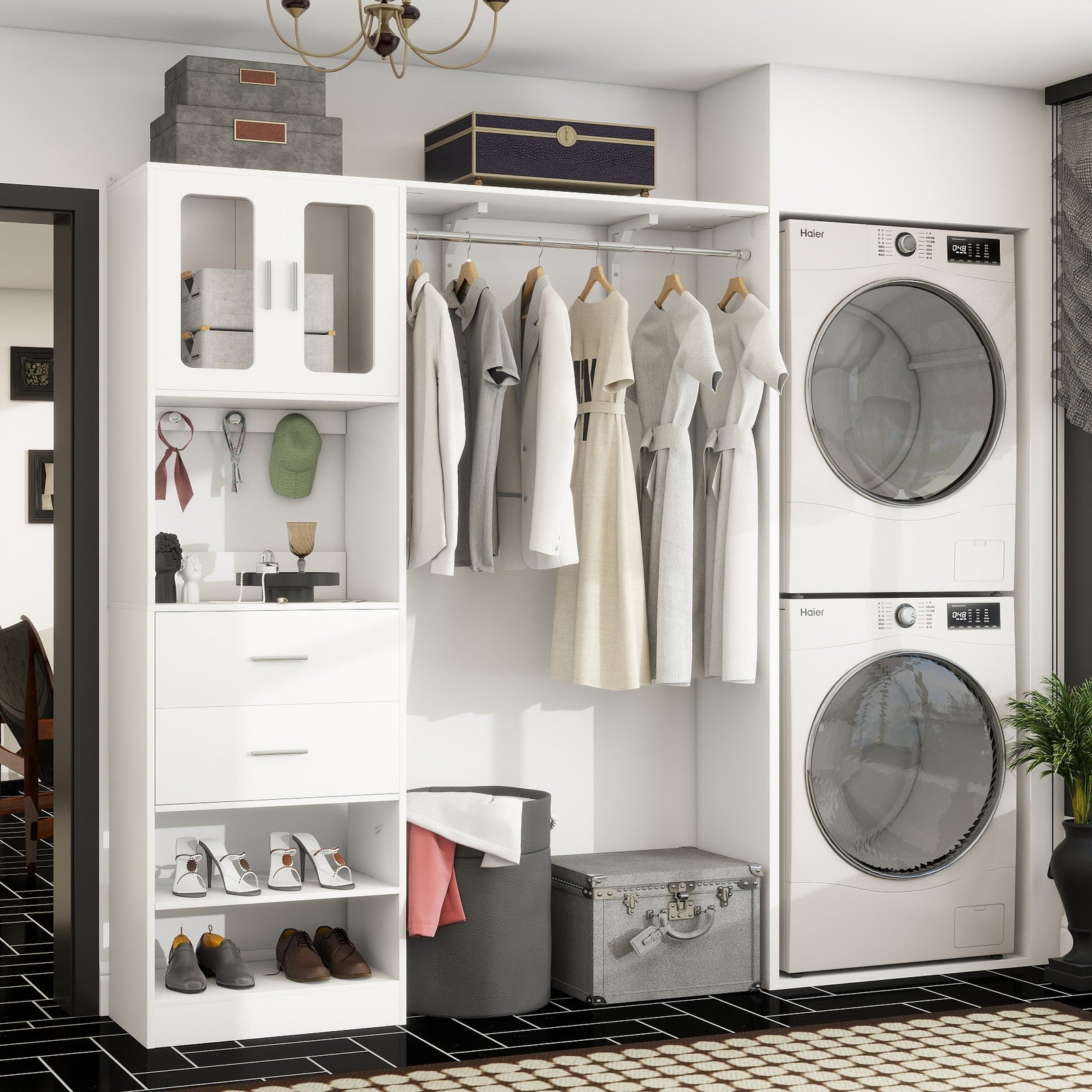 60'' W Walk-in Closet Organizer System with Door Storage Cabinet and Wood Drawer