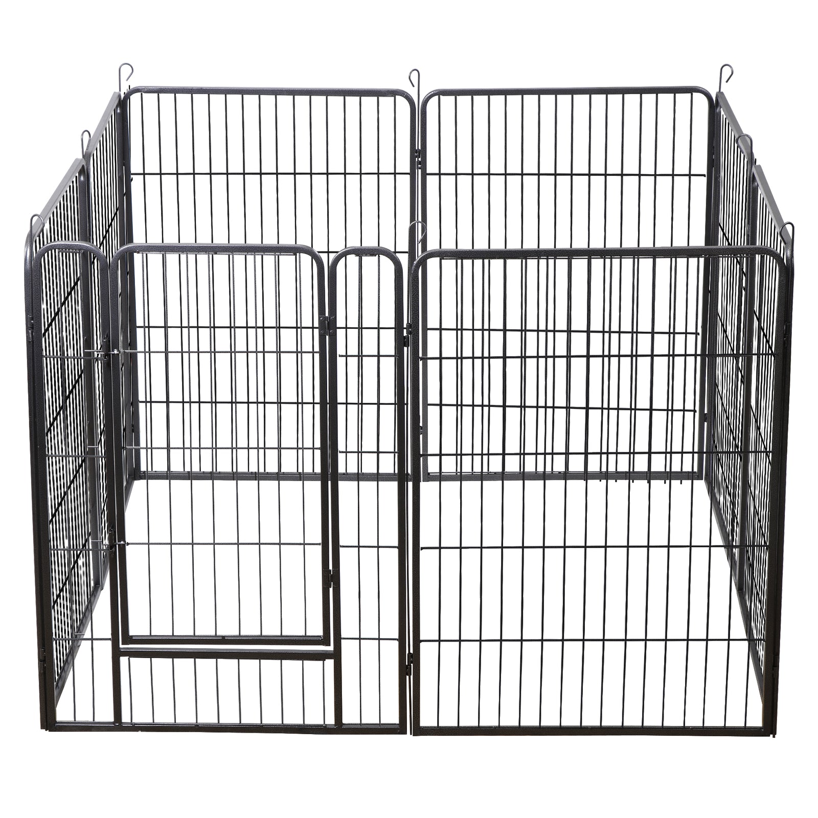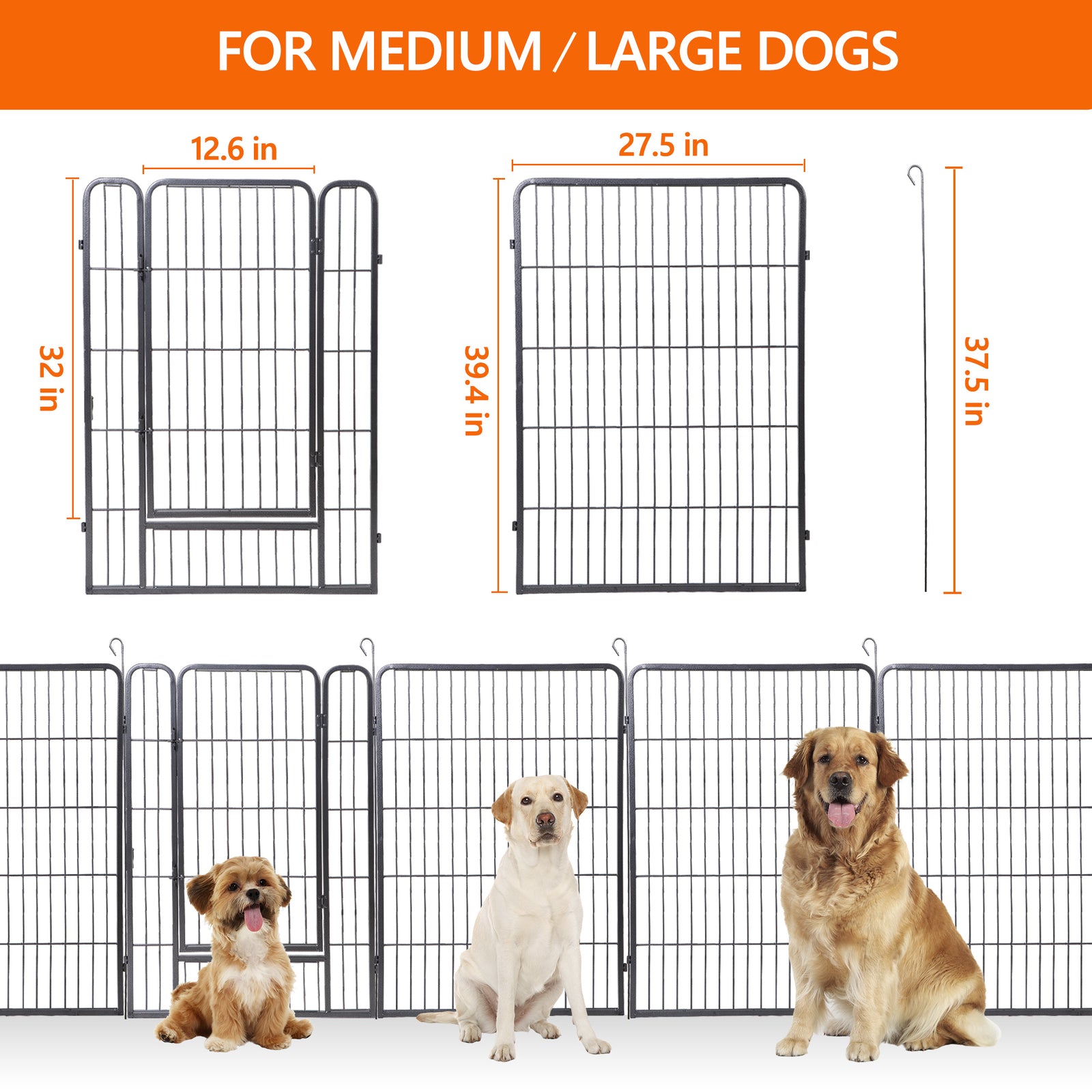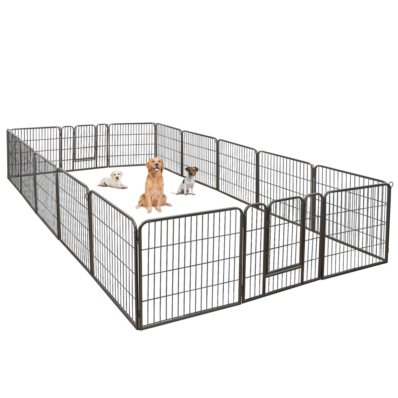 【Safe For Pets】 - Made by Premium Powder coated iron panels,Panels with hinged door and door latch easy for entry and exit.Metal stakes for easy panel arrangement.