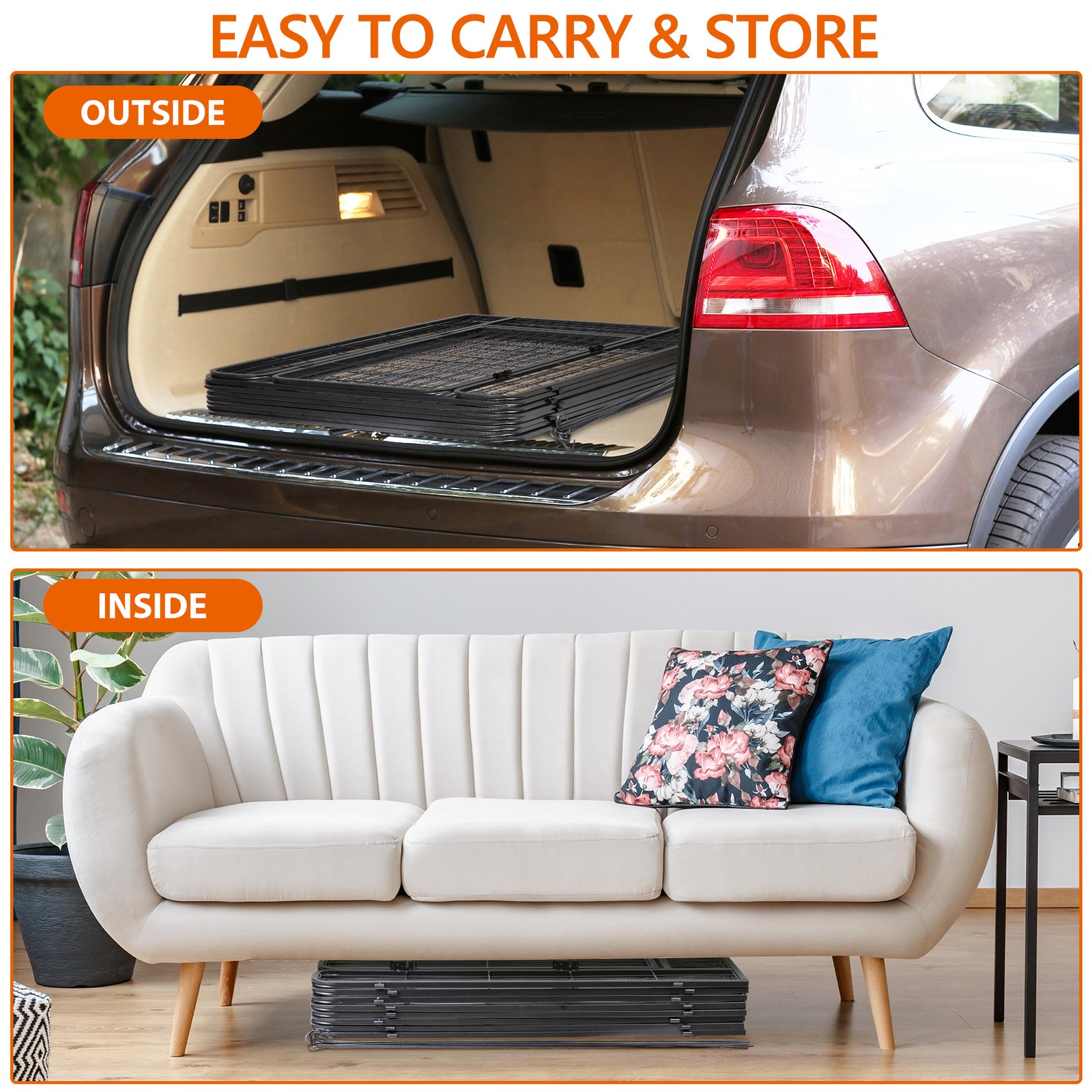 【Intimate Design & Durable】 - With rust resistant coated metal and rounded edges, the folding metal fence is built to last. Folds flat for easy storage/ transportation.