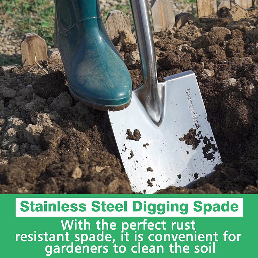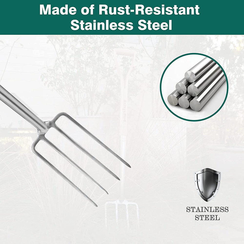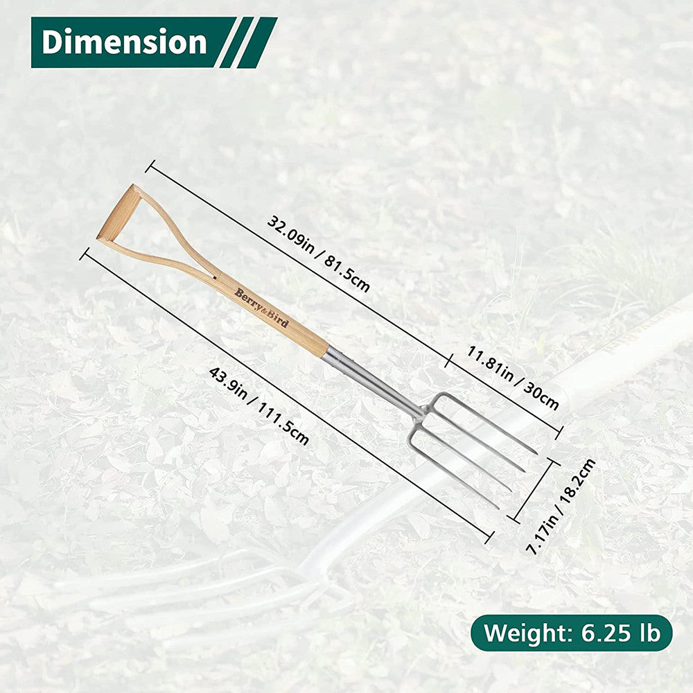 Long Handle Shovel Specification Brand: Berry&Bird Name: Long Handle Shovel Material: Stainless Steel+Ash Wood Blade Width: 6.97 in Blade Length: 11.42 in Handle Size: 31.49 in Item Length: 42.91 in Item Weight: 6 lb Long Handle Fork Specification Brand: Berry&Bird Name: Long Handle Fork Material: Stainless Steel+Ash Wood Blade Width: 7.17 in Blade Length: 11.81 in Handle Size: 32.09 in Item Length: 43.9 in Item Weight: 6.5 lb Package Included: 1*Long Handle Shovel 1*Long Handle Fork .