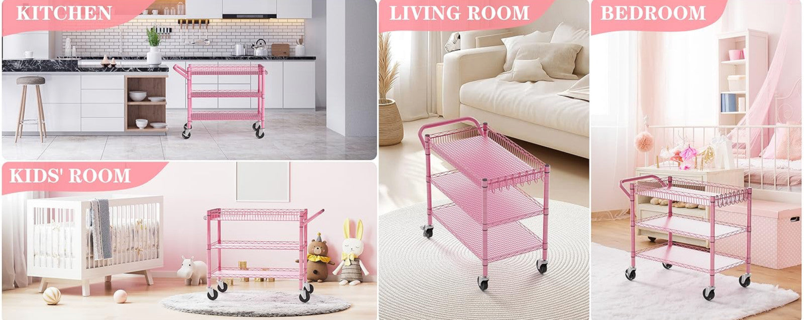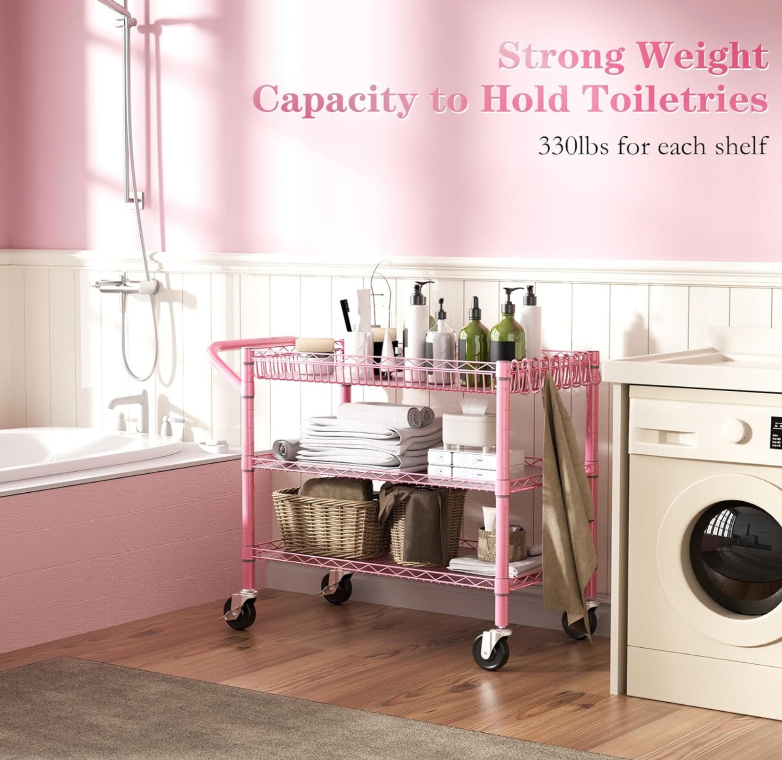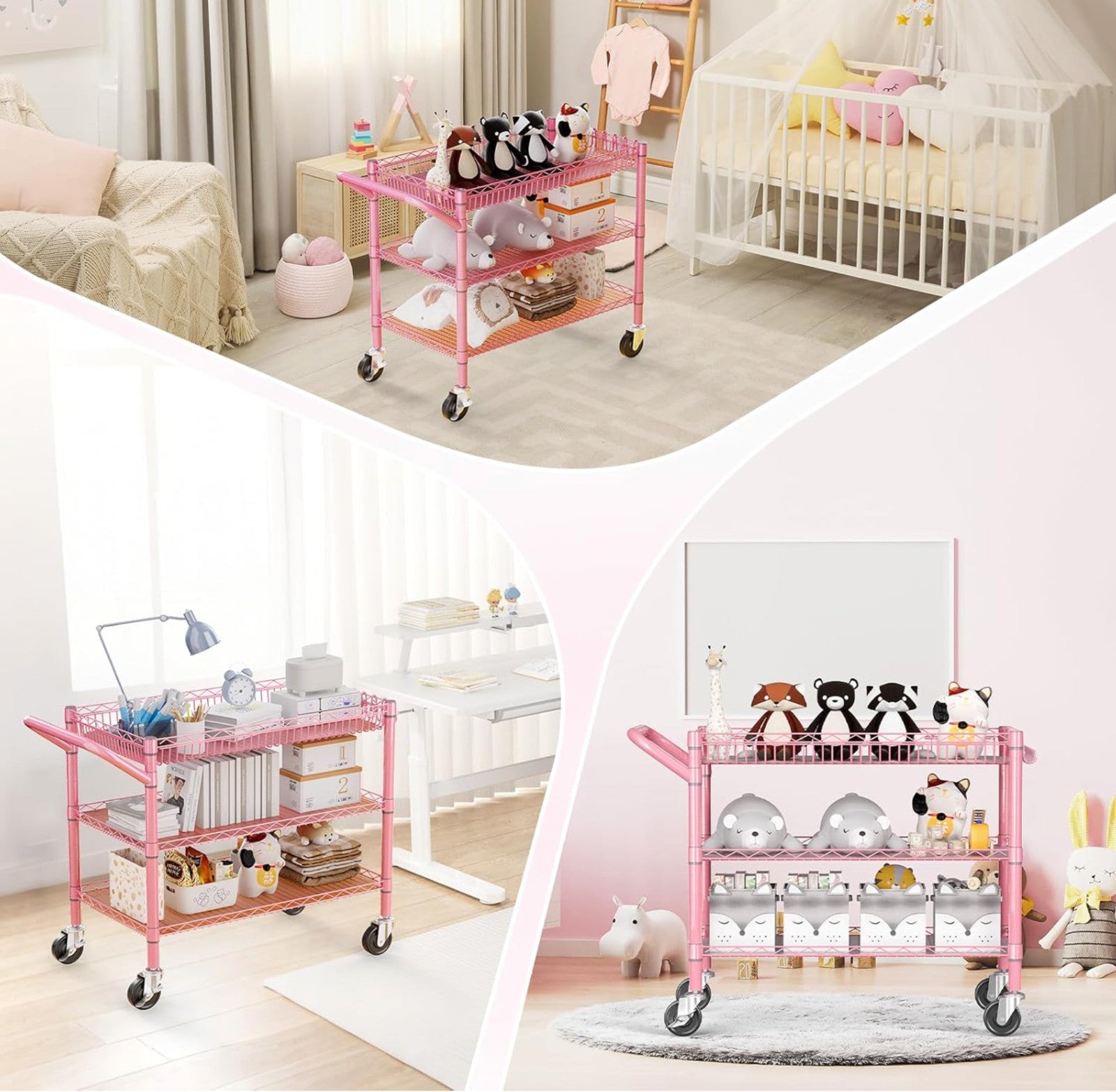 Heavy Duty Utility Cart with Handle 990lbs Capacity Metal 3 Tier Rolling Carts