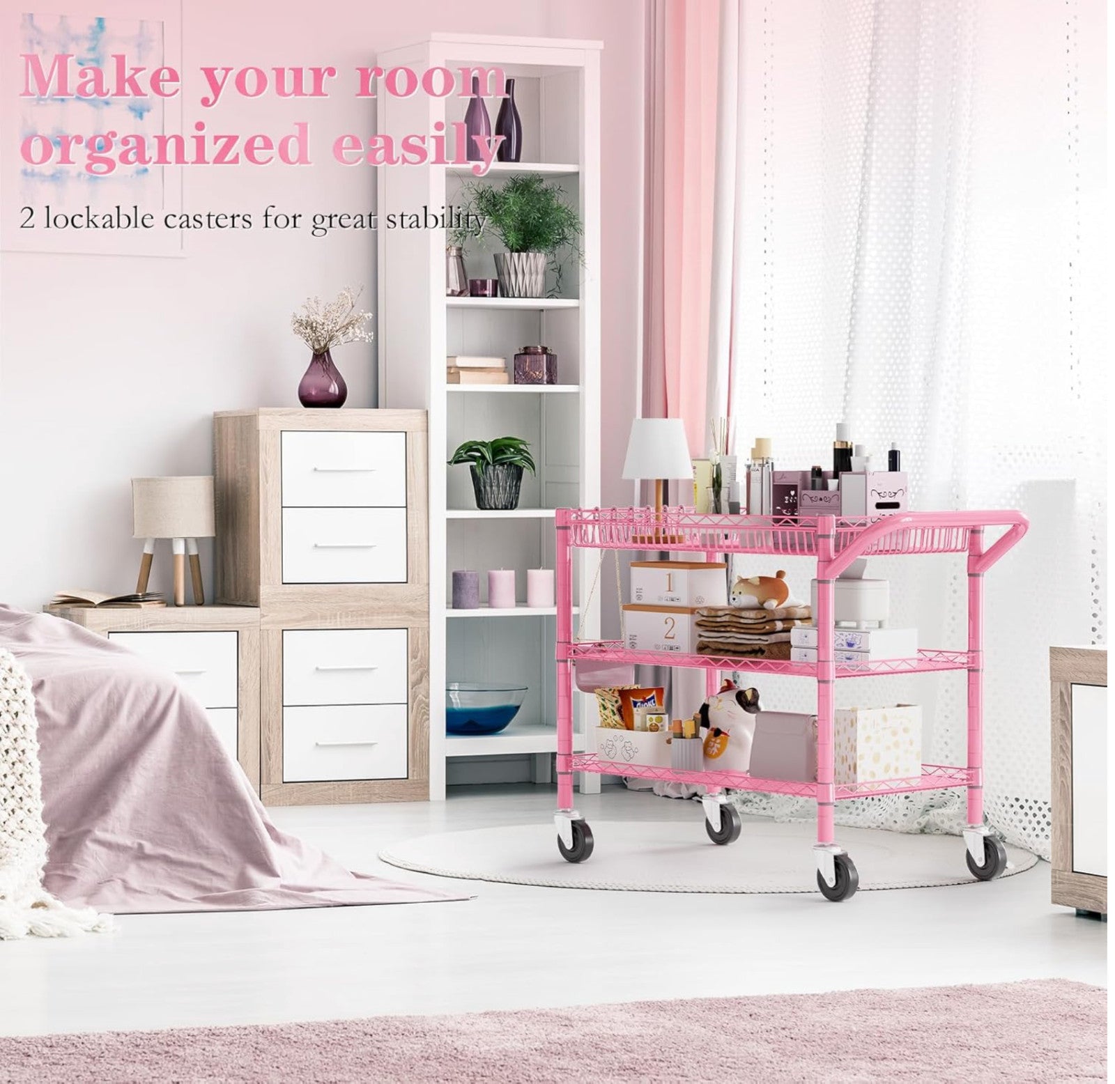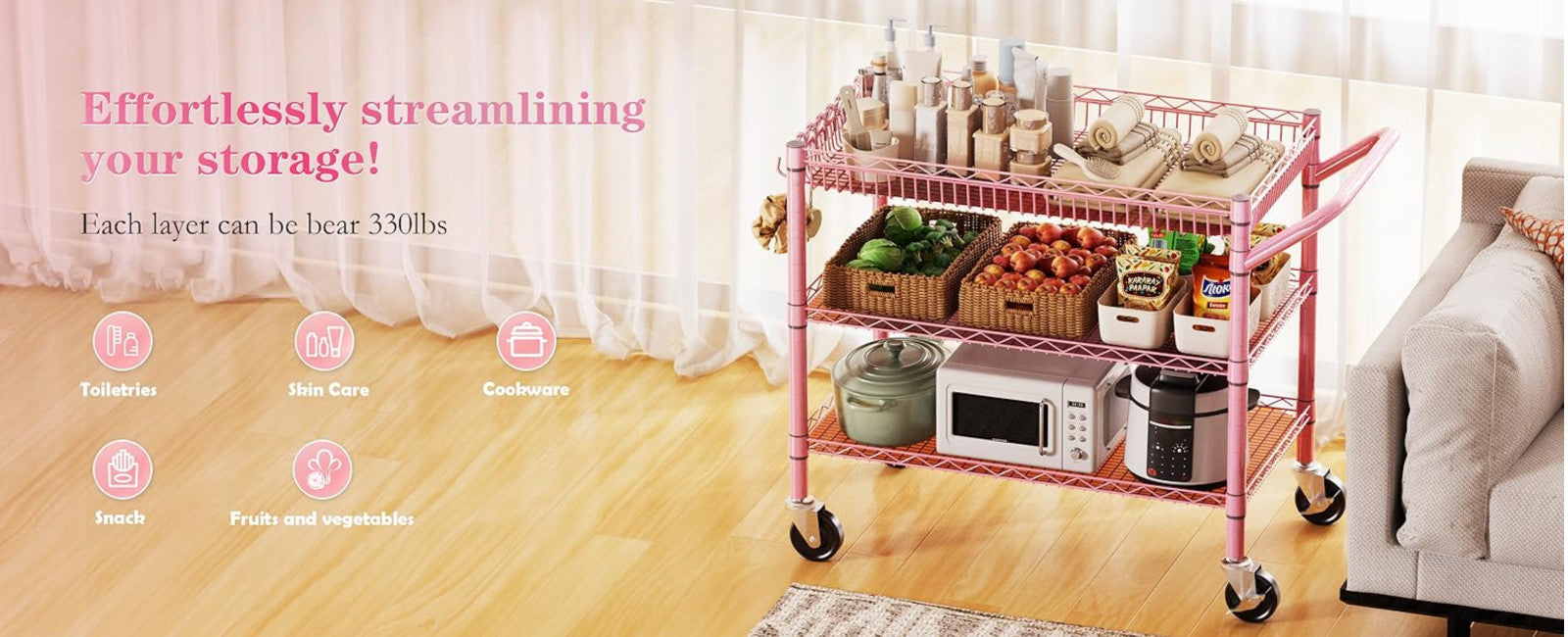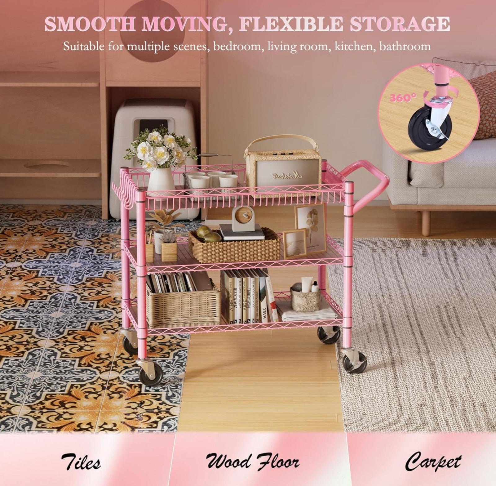 Heavy Duty Utility Cart with Handle 990lbs Capacity Metal 3 Tier Rolling Carts
