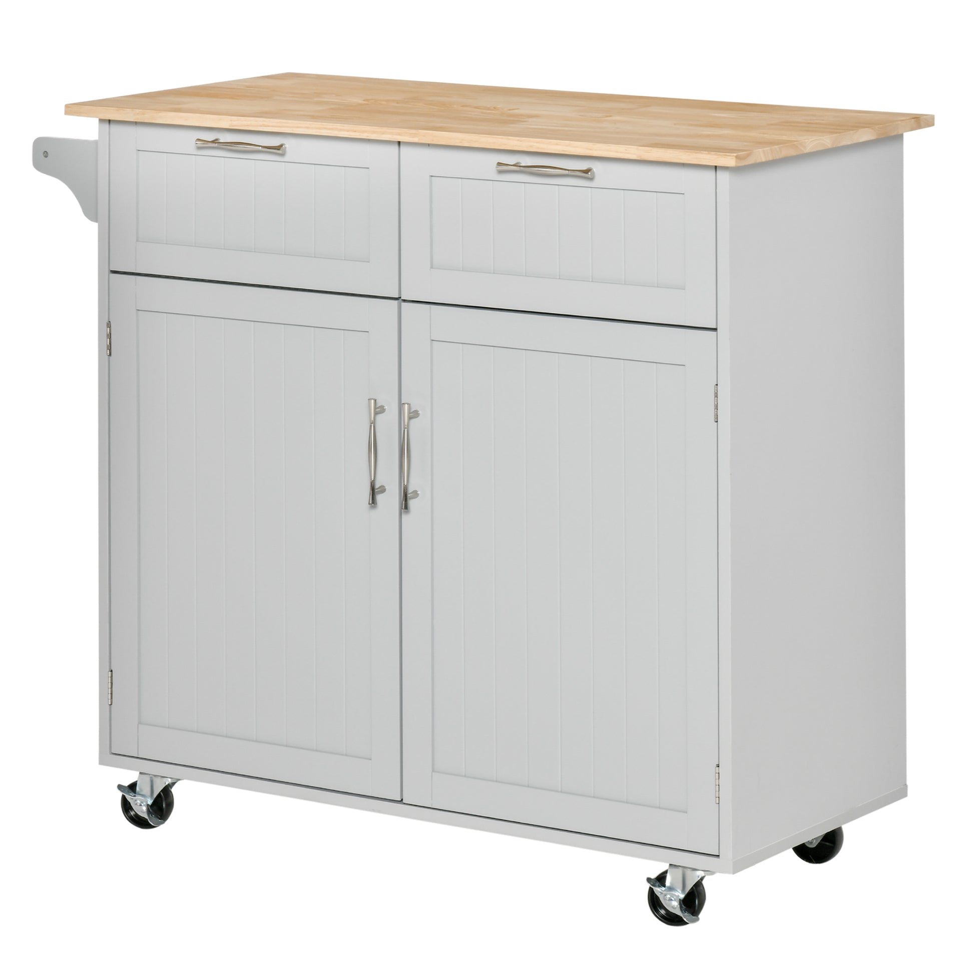 HOMCOM Modern Rolling Kitchen Island Storage Kitchen Cart 2 Drawers