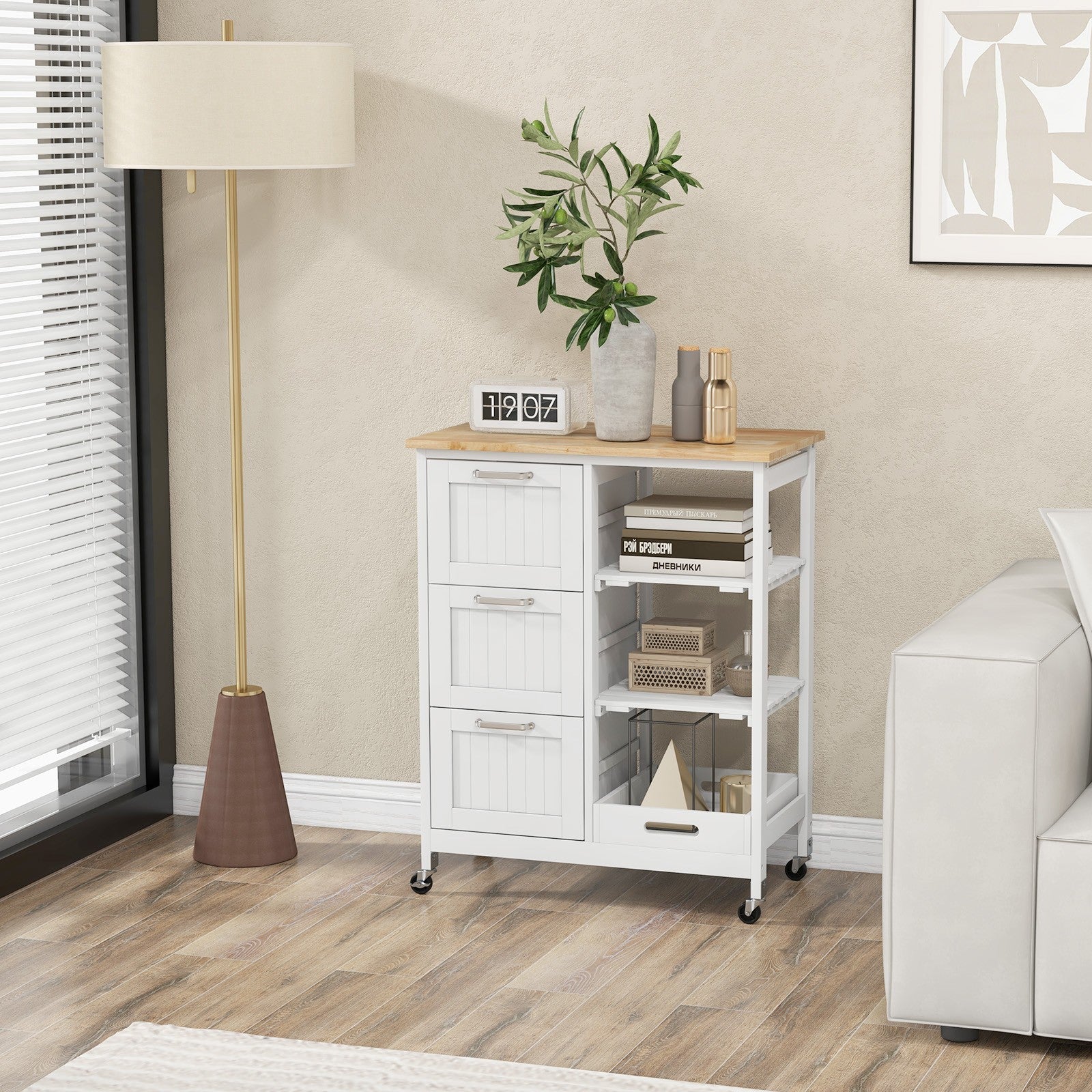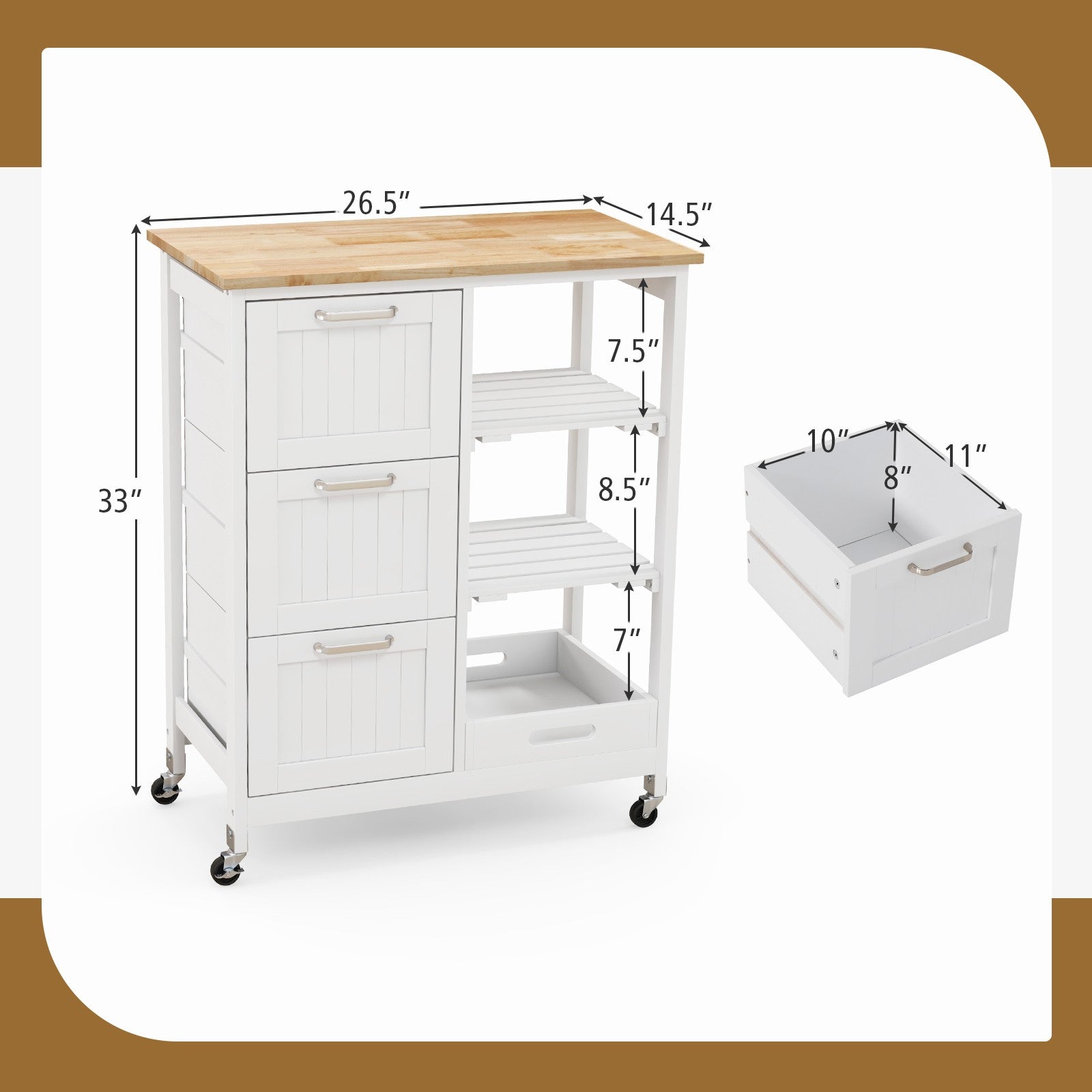 Kitchen Island Cart Mobile Storage Organizer w/ 3 Large Drawers 2 Open Shelves