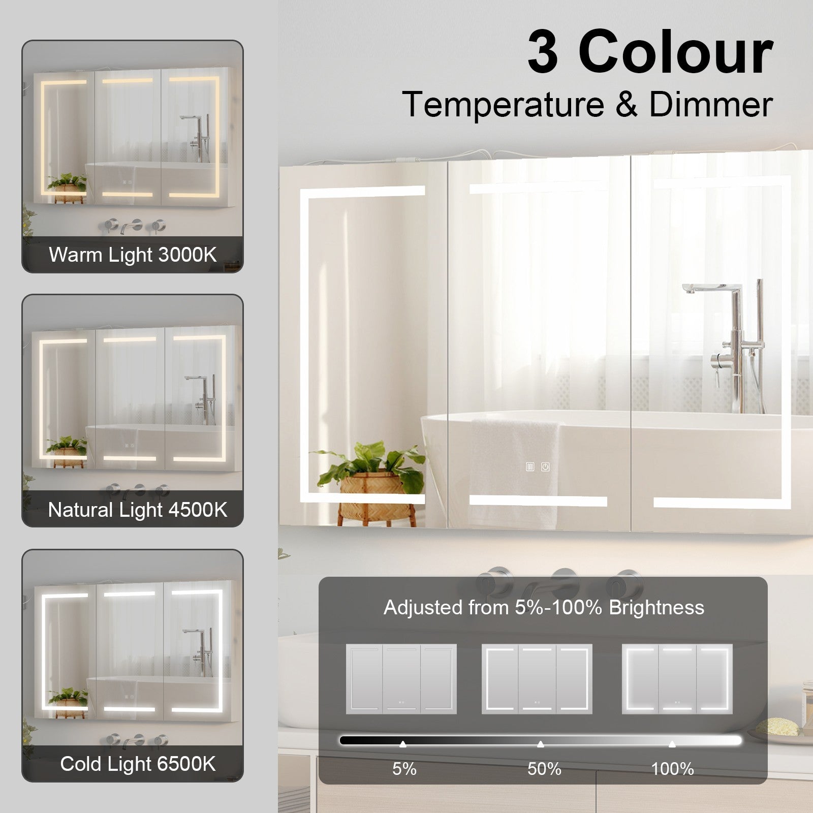 So the 3 doors LED mirror cabinet perfect for the bathroom, bed room, powder room and any room in between. Just touch the switch, then the piece with anti-fog button will be heated up to eliminate the fog, making your mirror clear.