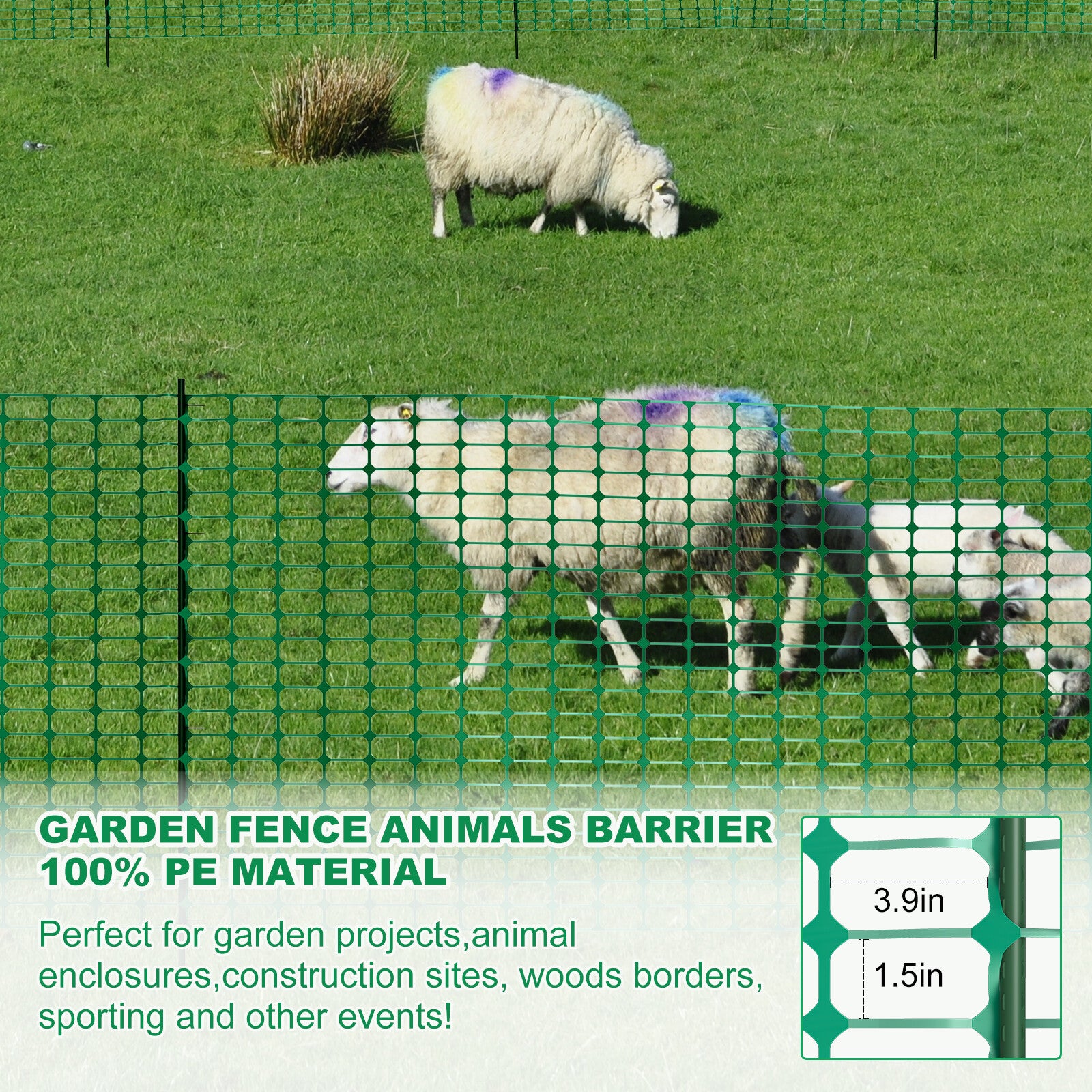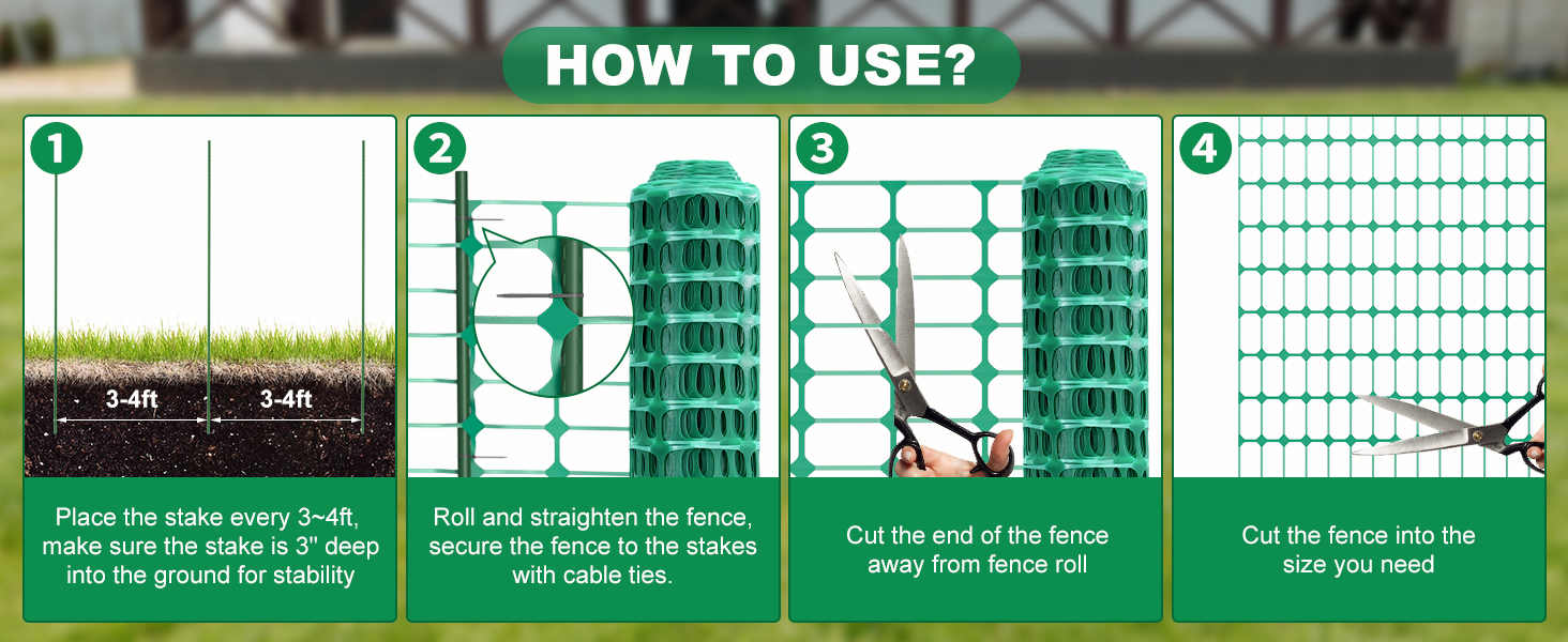 Multi Functional: This temporary safety fence is an excellent choice for garden fencing, safety and garden barrier needs. Suitable for a variety of scenarios, whether gardening projects, animal enclosures, swimming pools, road engineering, industry, building warnings or protecting your garden, terrace, courtyard, etc., to create a strong barrier to ensure your safe