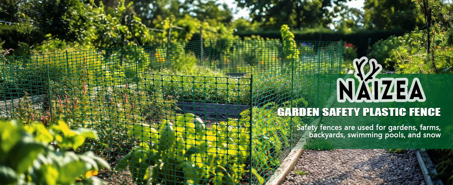 NAIZEA Garden Fence,Snow Fence Temporary Fence Plastic Fence with Posts & Stake