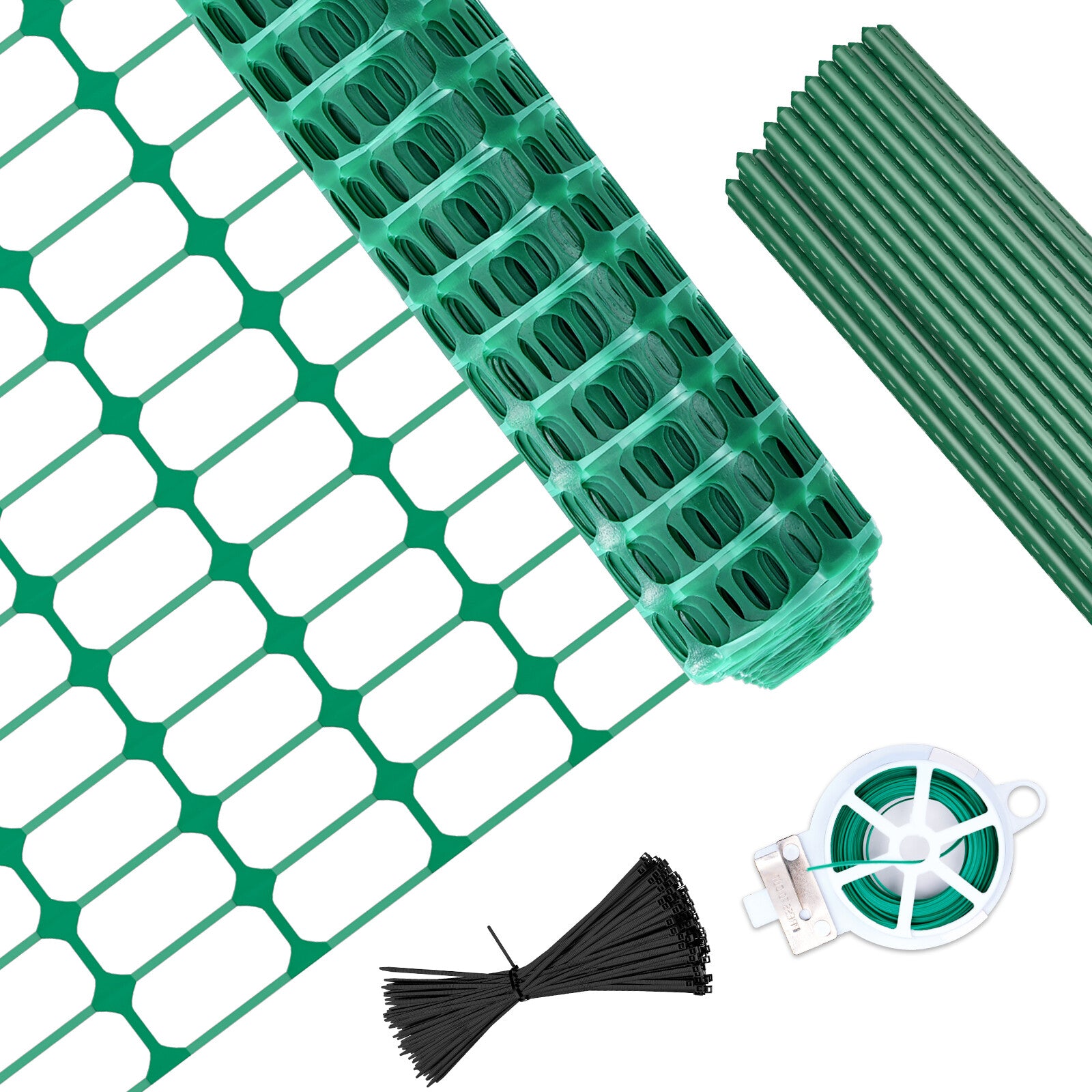 With 30 PCS/50 PCS durable plastic coated steel stakes, Garden Fence, 100 / 200 Zip Ties, One Roll Twist Tie