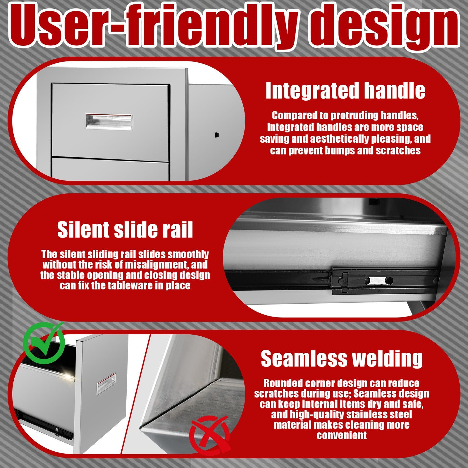 Premium Details: The stainless steel BBQ drawers were built with a lot of consideration, providing maximum convenience and security. Integrated high-end design, no drilling required for installation, good for sealing.