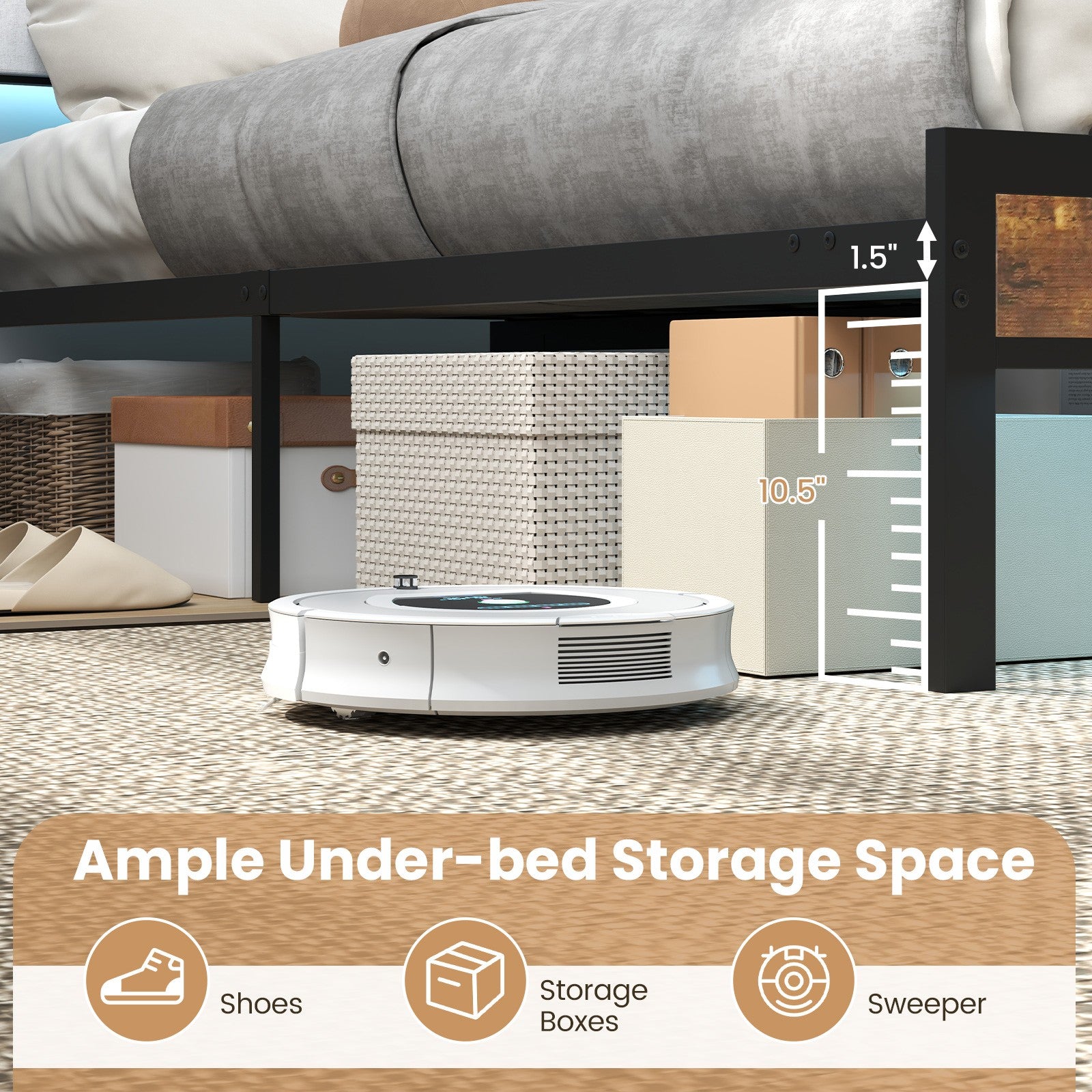 Queen Size Bed Frame w/LED Light & Charging Station Heavy Duty Metal Platform