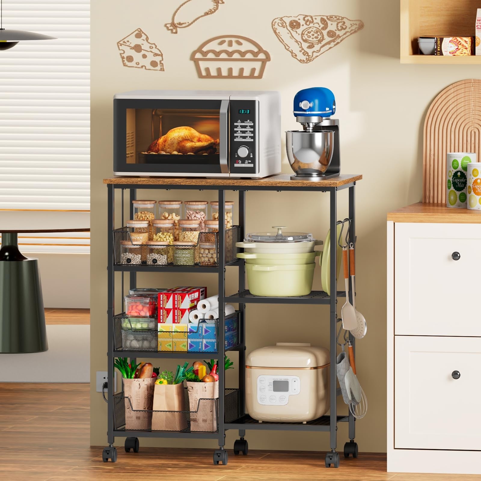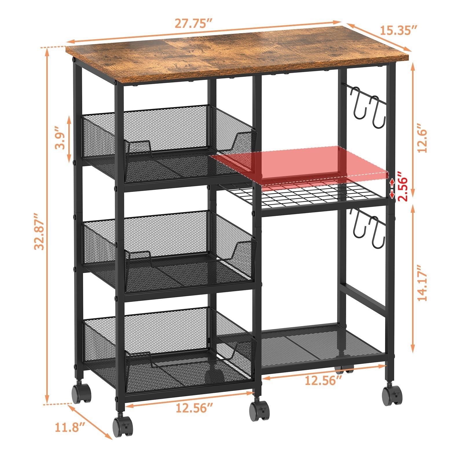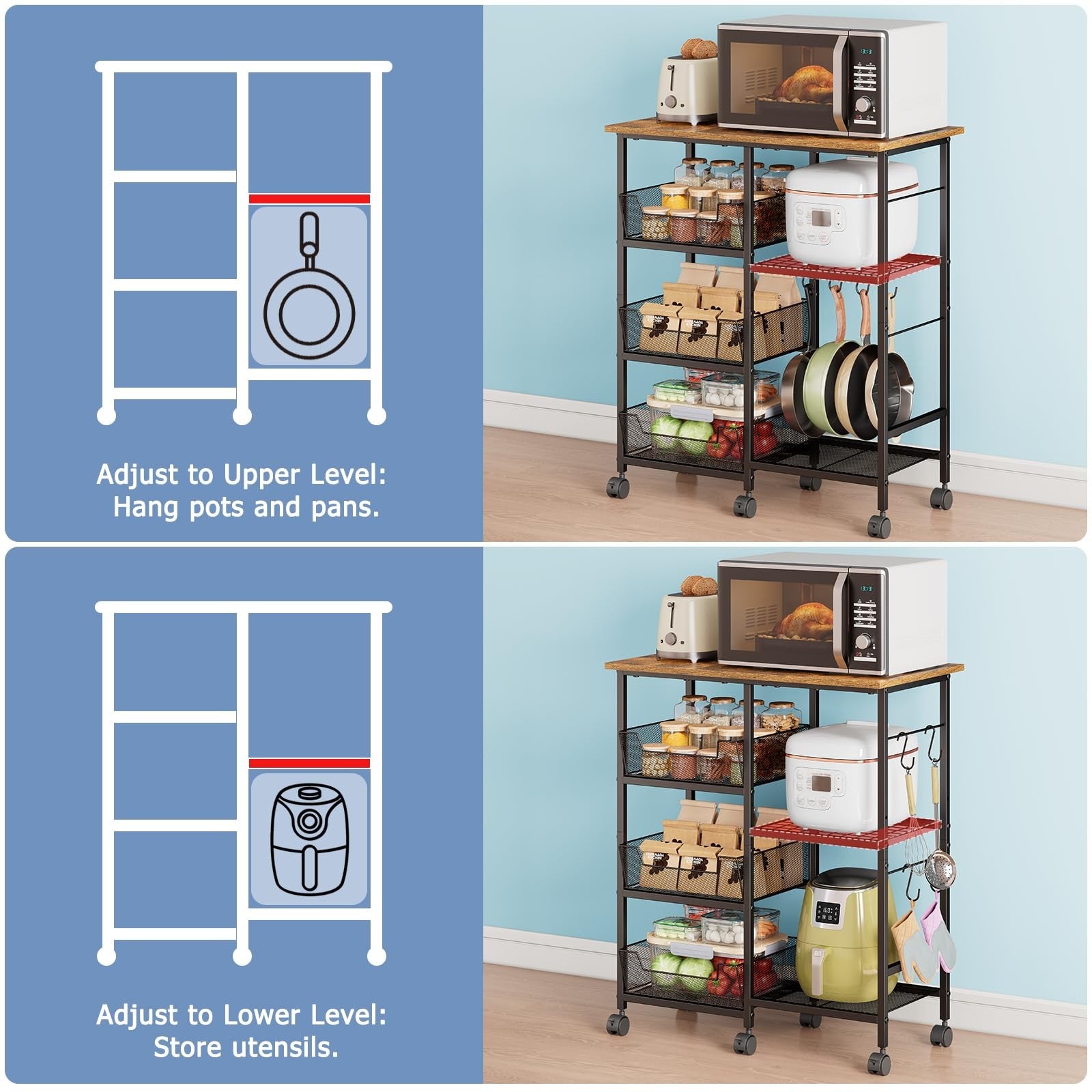 Rolling Kitchen Storage Microwave Cart, Kitchen Island with Adjustable Shelf ...